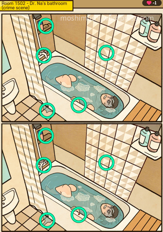 Walkthrough for case 2 in Detective S : Mystery game & Find the differences, Bathtub in a closed room