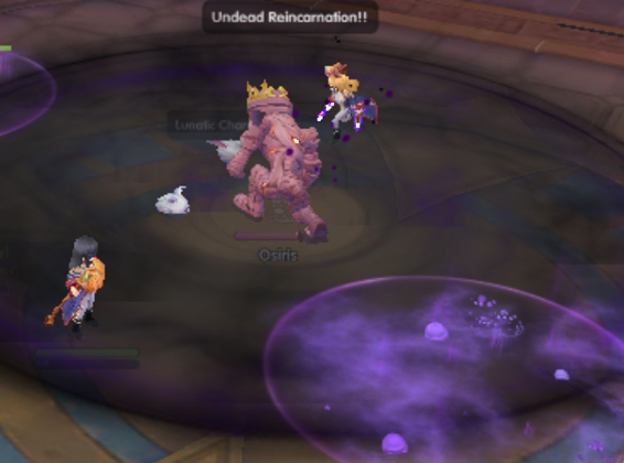 Members without the aggro can stand close to each other if you don’t want the circles spread out. After Virus Swamp, a member who can tank the damage from the black light can prepare to block the black light. The instant Osiris uses Undead Reincarnation (summoning some Isis) you can attack him.