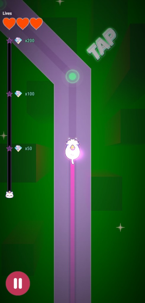 The rule is pretty straightforward – tap when the kitty crosses the green circle.